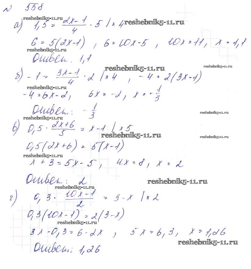 Готовая домашняя работа с ответами по Алгебре за 7 класс Макарычев, Миндюк, Нешков, Феоктистов Учебник УМК Углубленный уровень Мнемозина 2013 ФГОС - Упражнения 558