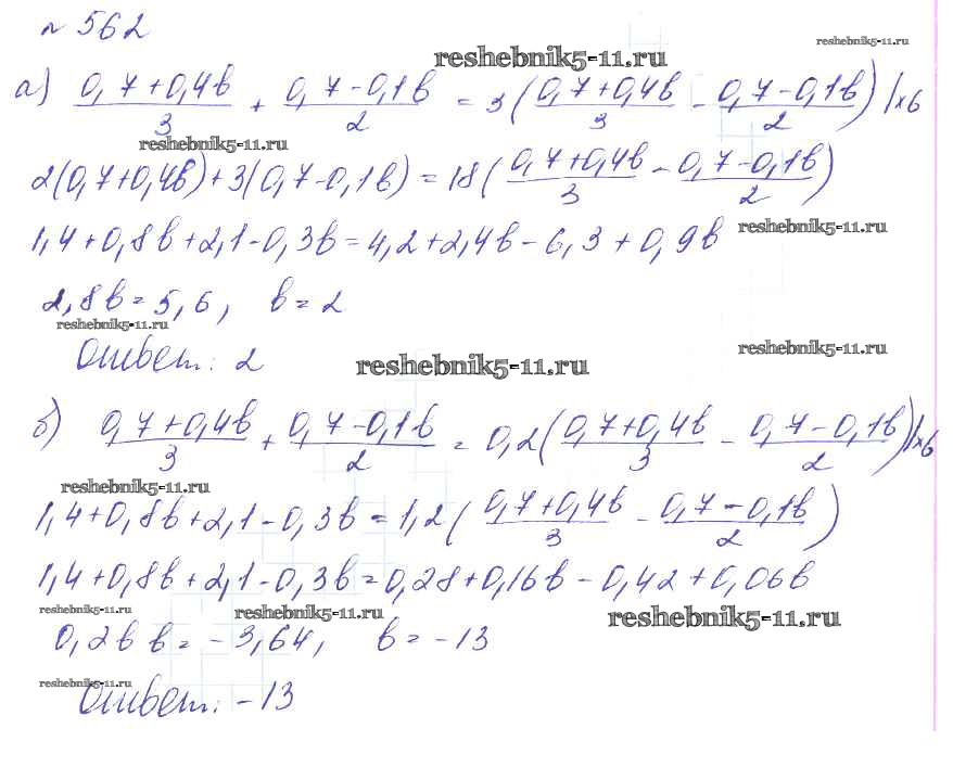 Готовая домашняя работа с ответами по Алгебре за 7 класс Макарычев, Миндюк, Нешков, Феоктистов Учебник УМК Углубленный уровень Мнемозина 2013 ФГОС - Упражнения 562