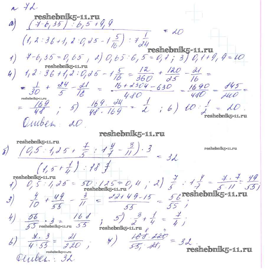 Готовая домашняя работа с ответами по Алгебре за 7 класс Макарычев, Миндюк, Нешков, Феоктистов Учебник УМК Углубленный уровень Мнемозина 2013 ФГОС - Упражнения 72