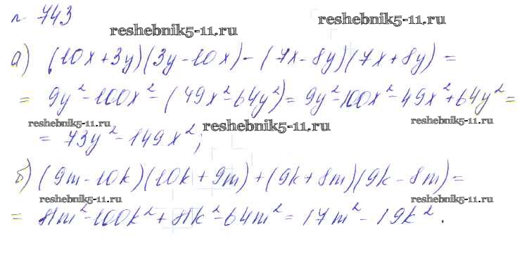 Готовая домашняя работа с ответами по Алгебре за 7 класс Макарычев, Миндюк, Нешков, Феоктистов Учебник УМК Углубленный уровень Мнемозина 2013 ФГОС - Упражнения 743