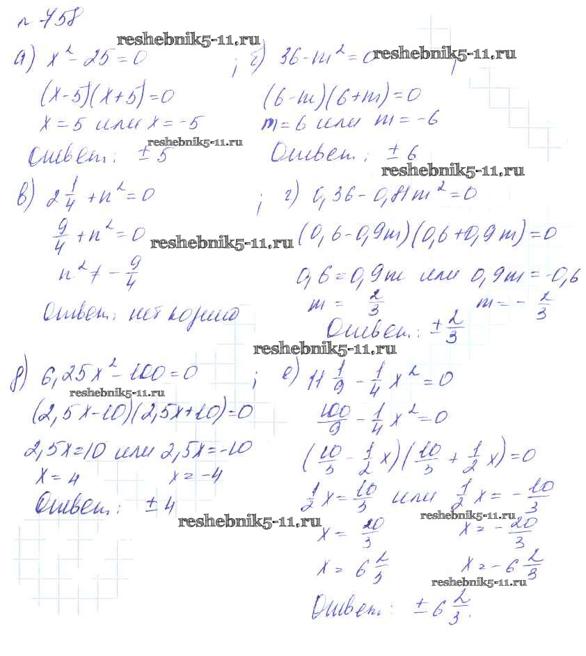 Готовая домашняя работа с ответами по Алгебре за 7 класс Макарычев, Миндюк, Нешков, Феоктистов Учебник УМК Углубленный уровень Мнемозина 2013 ФГОС - Упражнения 758