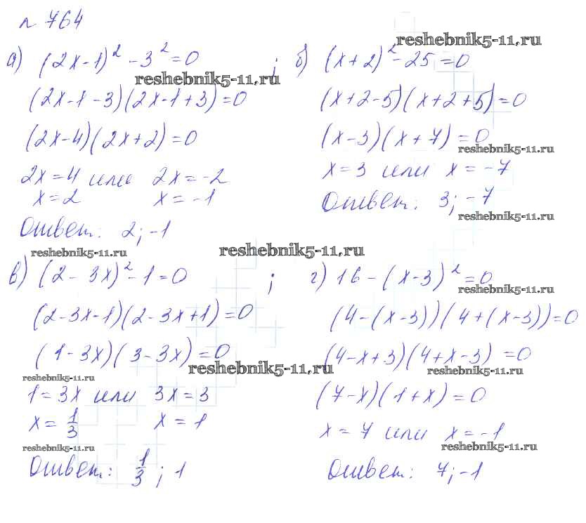 Готовая домашняя работа с ответами по Алгебре за 7 класс Макарычев, Миндюк, Нешков, Феоктистов Учебник УМК Углубленный уровень Мнемозина 2013 ФГОС - Упражнения 764