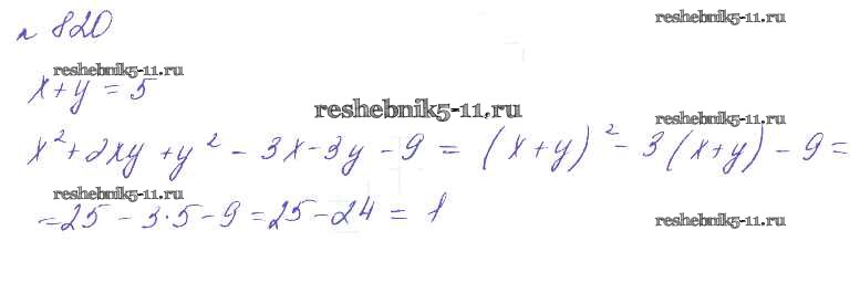 Готовая домашняя работа с ответами по Алгебре за 7 класс Макарычев, Миндюк, Нешков, Феоктистов Учебник УМК Углубленный уровень Мнемозина 2013 ФГОС - Упражнения 820