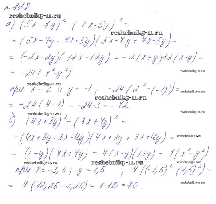 Готовая домашняя работа с ответами по Алгебре за 7 класс Макарычев, Миндюк, Нешков, Феоктистов Учебник УМК Углубленный уровень Мнемозина 2013 ФГОС - Упражнения 828