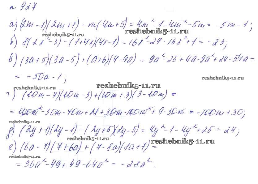 Готовая домашняя работа с ответами по Алгебре за 7 класс Макарычев, Миндюк, Нешков, Феоктистов Учебник УМК Углубленный уровень Мнемозина 2013 ФГОС - Упражнения 927
