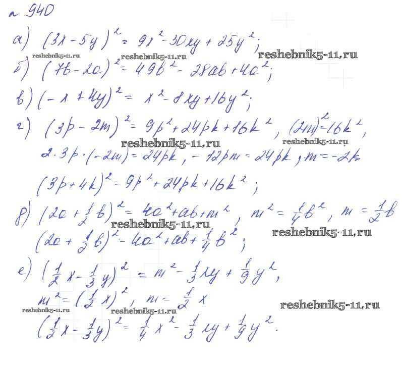 Готовая домашняя работа с ответами по Алгебре за 7 класс Макарычев, Миндюк, Нешков, Феоктистов Учебник УМК Углубленный уровень Мнемозина 2013 ФГОС - Упражнения 940