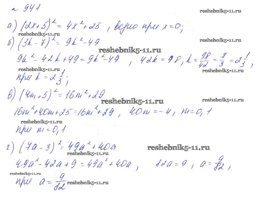 Готовая домашняя работа с ответами по Алгебре за 7 класс Макарычев, Миндюк, Нешков, Феоктистов Учебник УМК Углубленный уровень Мнемозина 2013 ФГОС - Упражнения 941