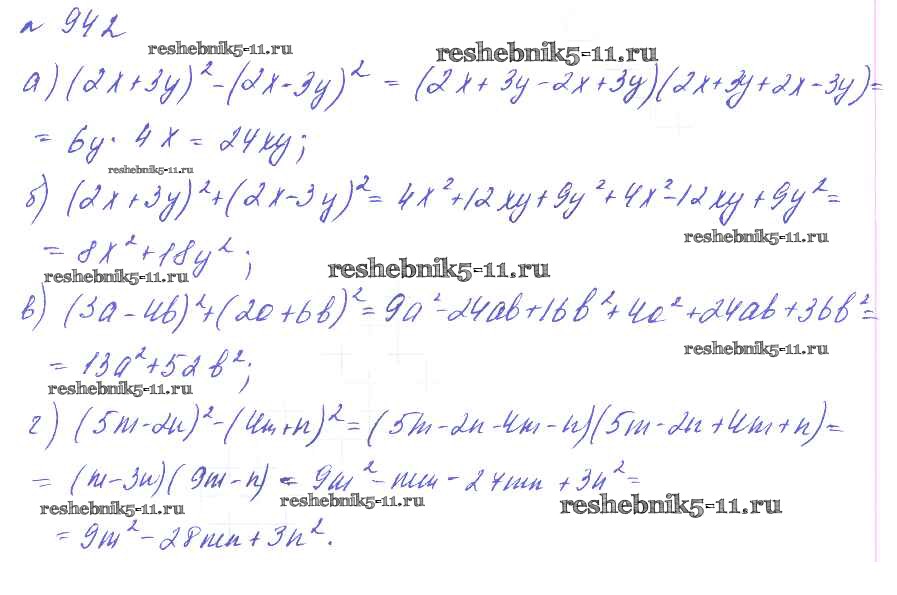 Готовая домашняя работа с ответами по Алгебре за 7 класс Макарычев, Миндюк, Нешков, Феоктистов Учебник УМК Углубленный уровень Мнемозина 2013 ФГОС - Упражнения 942