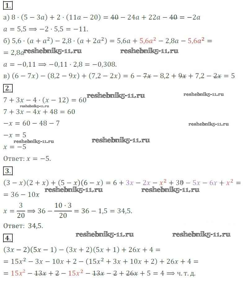 Готовая домашняя работа с ответами по Алгебре за 7 класс Потапов, Шевкин Дидактические материалы МГУ - школе Просвещение 2017 ФГОС - СР-11. Варианты 4