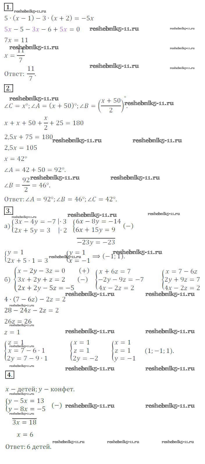 Готовая домашняя работа с ответами по Алгебре за 7 класс Потапов, Шевкин Дидактические материалы МГУ - школе Просвещение 2017 ФГОС - КР-6. Варианты 4