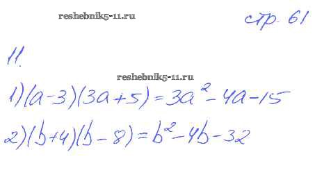 Готовая домашняя работа с ответами по Алгебре за 7 класс Мерзляк, Полонский, Якир Рабочая тетрадь Алгоритм успеха Часть 1, 2 Вентана-граф 2018 ФГОС - § 11. Умножение многочлена на многочлен. Страница 56-63 11
