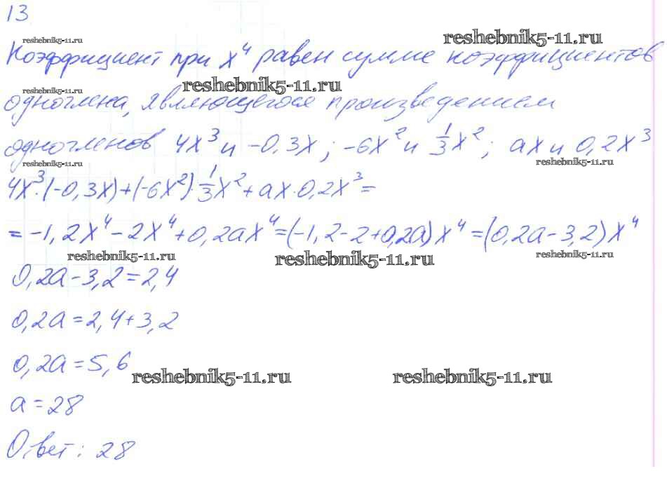 Готовая домашняя работа с ответами по Алгебре за 7 класс Мерзляк, Полонский, Якир Рабочая тетрадь Алгоритм успеха Часть 1, 2 Вентана-граф 2018 ФГОС - § 11. Умножение многочлена на многочлен. Страница 56-63 13