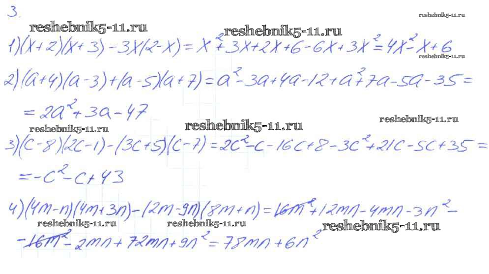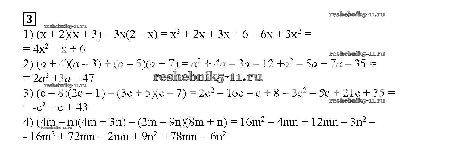 Готовая домашняя работа с ответами по Алгебре за 7 класс Мерзляк, Полонский, Якир Рабочая тетрадь Алгоритм успеха Часть 1, 2 Вентана-граф 2018 ФГОС - § 11. Умножение многочлена на многочлен. Страница 56-63 3