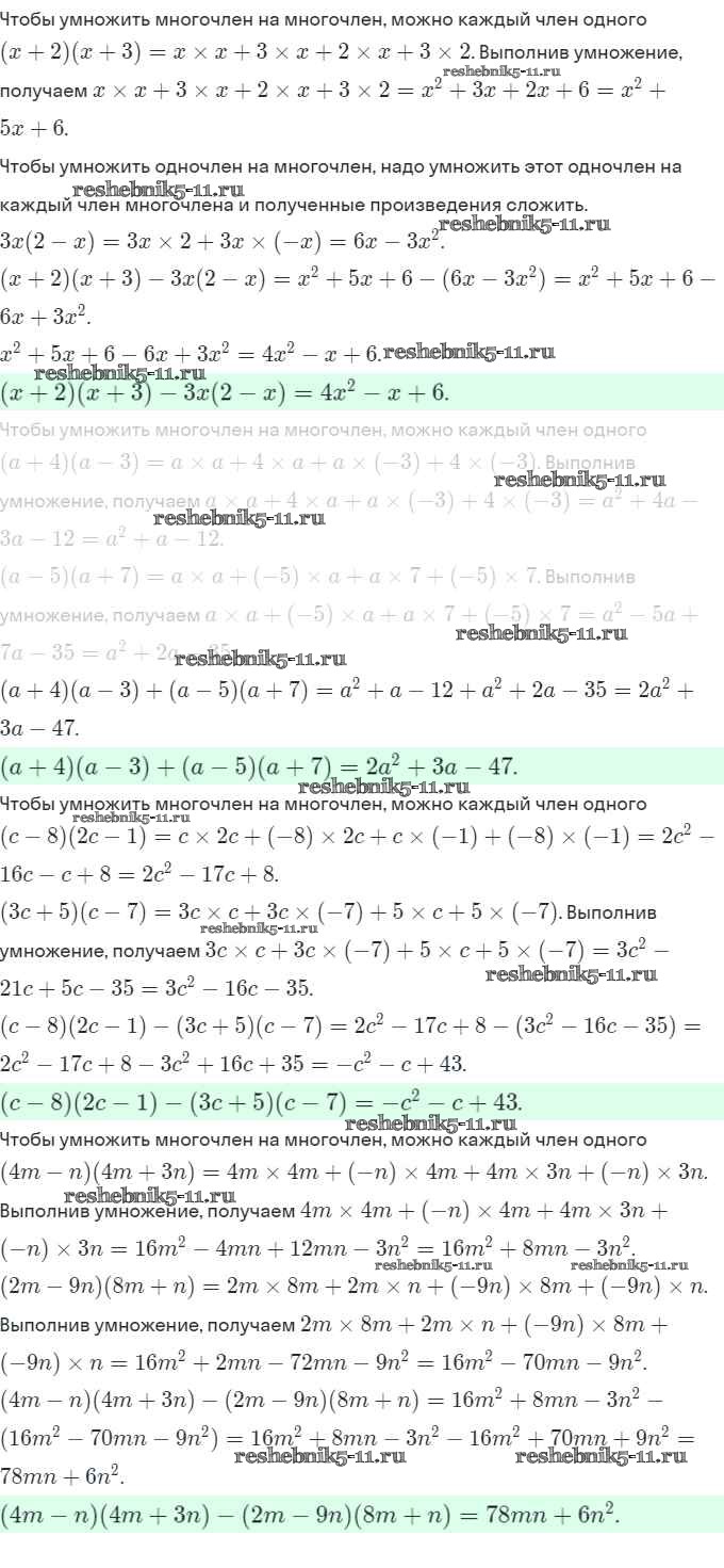 § 11. Умножение многочлена на многочлен. Страница 56-63