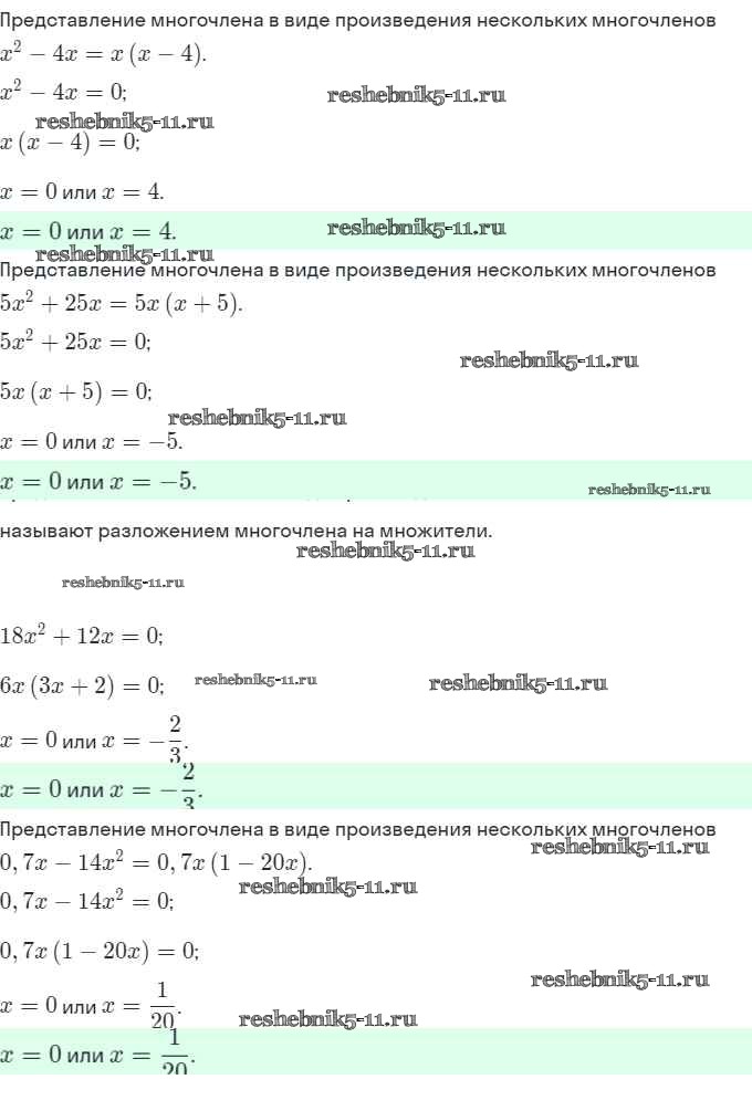 § 12. Разложение многочлена на множители. Вынесение общего множителя за скобки. Страница 63-69