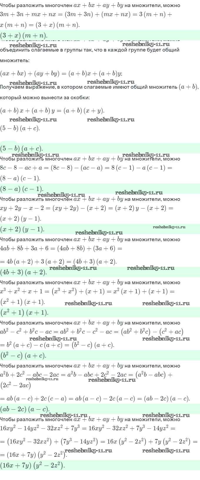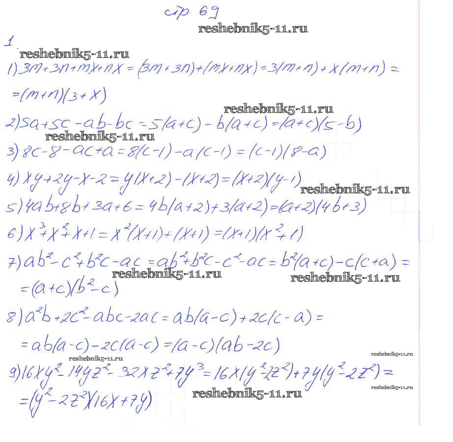 § 13. Разложение многочленов на множители. Метод группировки. Страница 69-71