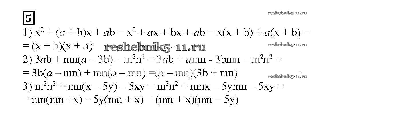 Готовая домашняя работа с ответами по Алгебре за 7 класс Мерзляк, Полонский, Якир Рабочая тетрадь Алгоритм успеха Часть 1, 2 Вентана-граф 2018 ФГОС - § 13. Разложение многочленов на множители. Метод группировки. Страница 69-71 5