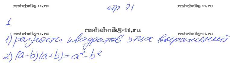 Готовая домашняя работа с ответами по Алгебре за 7 класс Мерзляк, Полонский, Якир Рабочая тетрадь Алгоритм успеха Часть 1, 2 Вентана-граф 2018 ФГОС - § 14. Произведение разности и суммы двух выражений. Страница 71-74 1