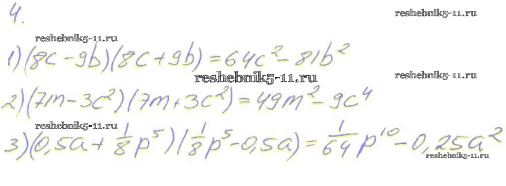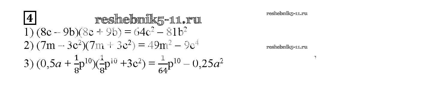 Готовая домашняя работа с ответами по Алгебре за 7 класс Мерзляк, Полонский, Якир Рабочая тетрадь Алгоритм успеха Часть 1, 2 Вентана-граф 2018 ФГОС - § 14. Произведение разности и суммы двух выражений. Страница 71-74 4