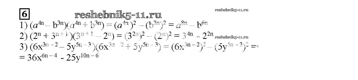 Готовая домашняя работа с ответами по Алгебре за 7 класс Мерзляк, Полонский, Якир Рабочая тетрадь Алгоритм успеха Часть 1, 2 Вентана-граф 2018 ФГОС - § 14. Произведение разности и суммы двух выражений. Страница 71-74 6