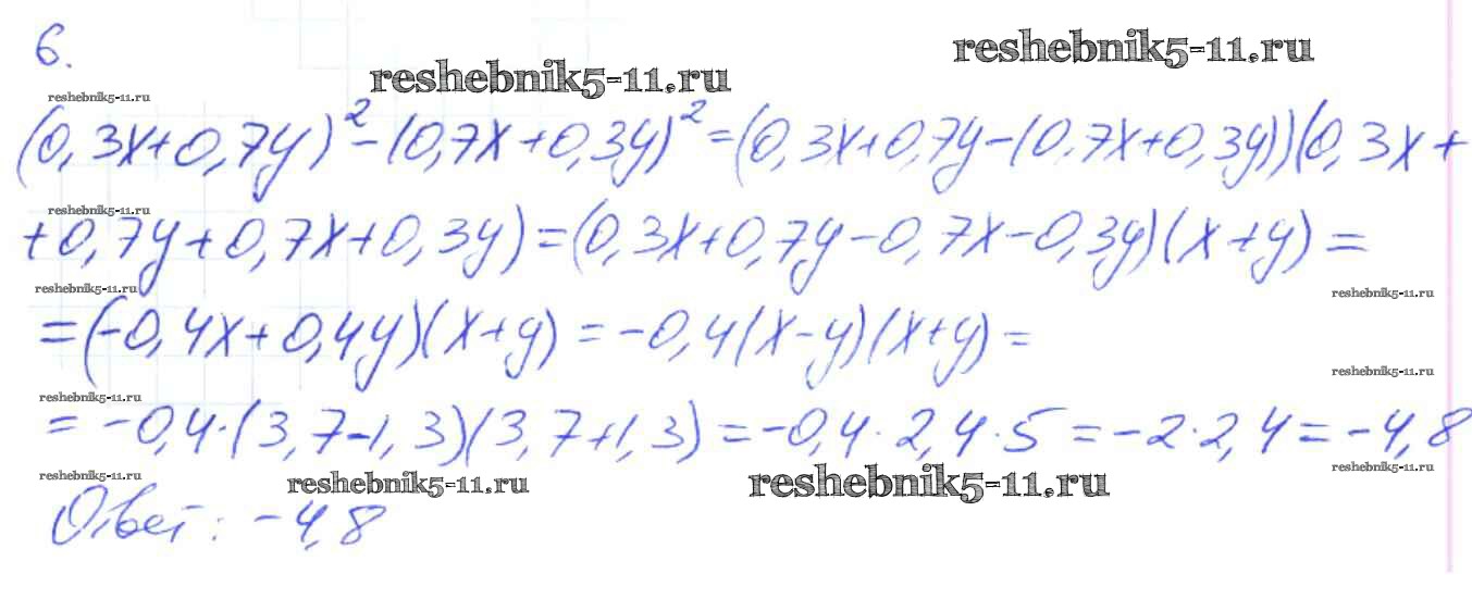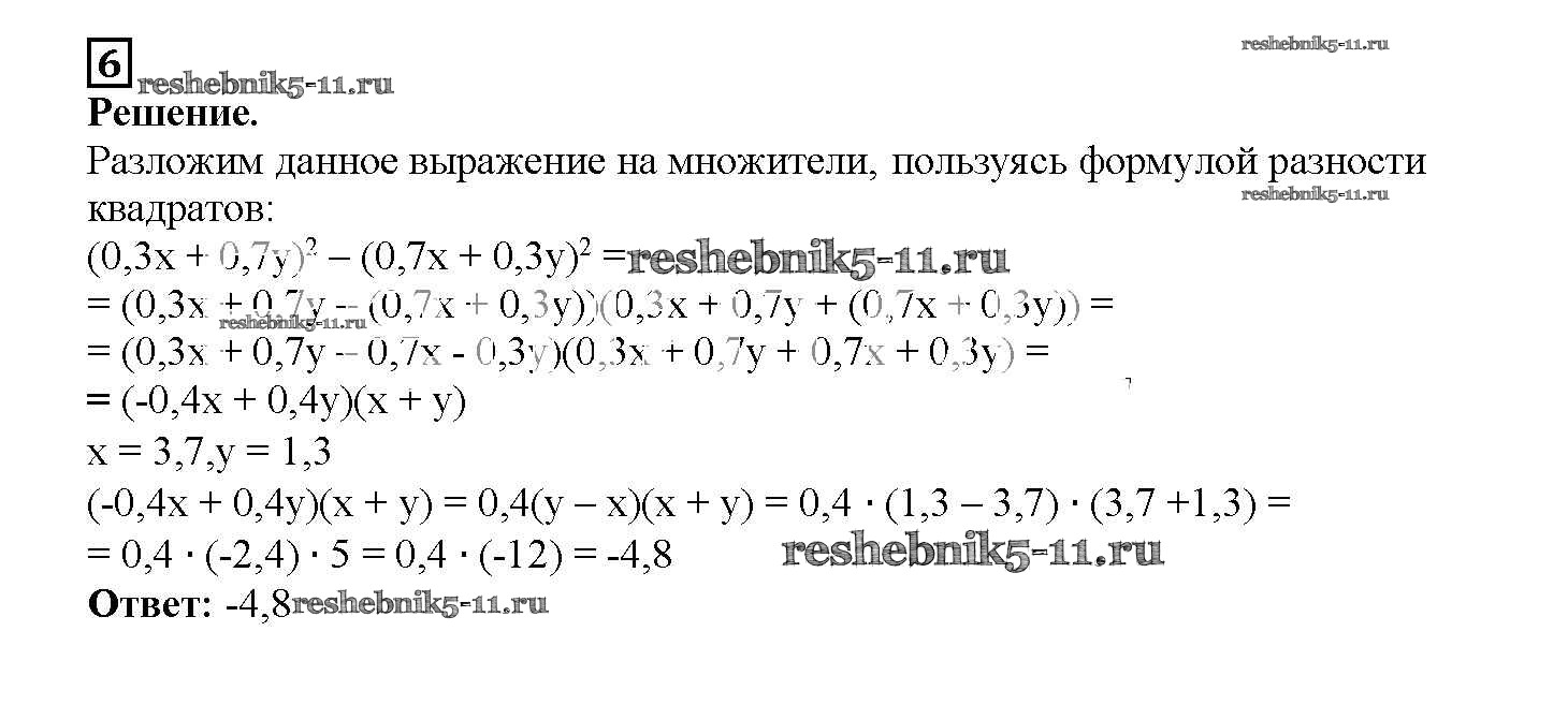 Готовая домашняя работа с ответами по Алгебре за 7 класс Мерзляк, Полонский, Якир Рабочая тетрадь Алгоритм успеха Часть 1, 2 Вентана-граф 2018 ФГОС - § 15. Разность квадратов двух выражений. Страница 74-82 6