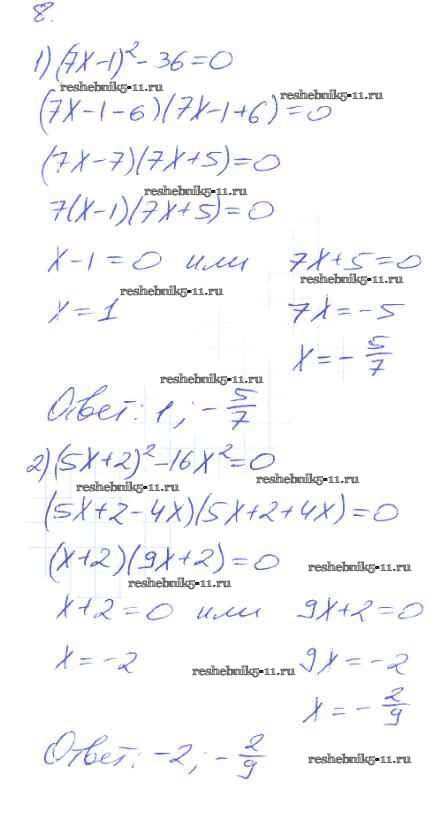 Готовая домашняя работа с ответами по Алгебре за 7 класс Мерзляк, Полонский, Якир Рабочая тетрадь Алгоритм успеха Часть 1, 2 Вентана-граф 2018 ФГОС - § 15. Разность квадратов двух выражений. Страница 74-82 8