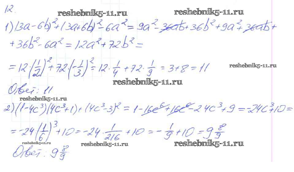 Готовая домашняя работа с ответами по Алгебре за 7 класс Мерзляк, Полонский, Якир Рабочая тетрадь Алгоритм успеха Часть 1, 2 Вентана-граф 2018 ФГОС - § 16. Квадрат суммы и квадрат разности двух выражений. Страница 82-91 12
