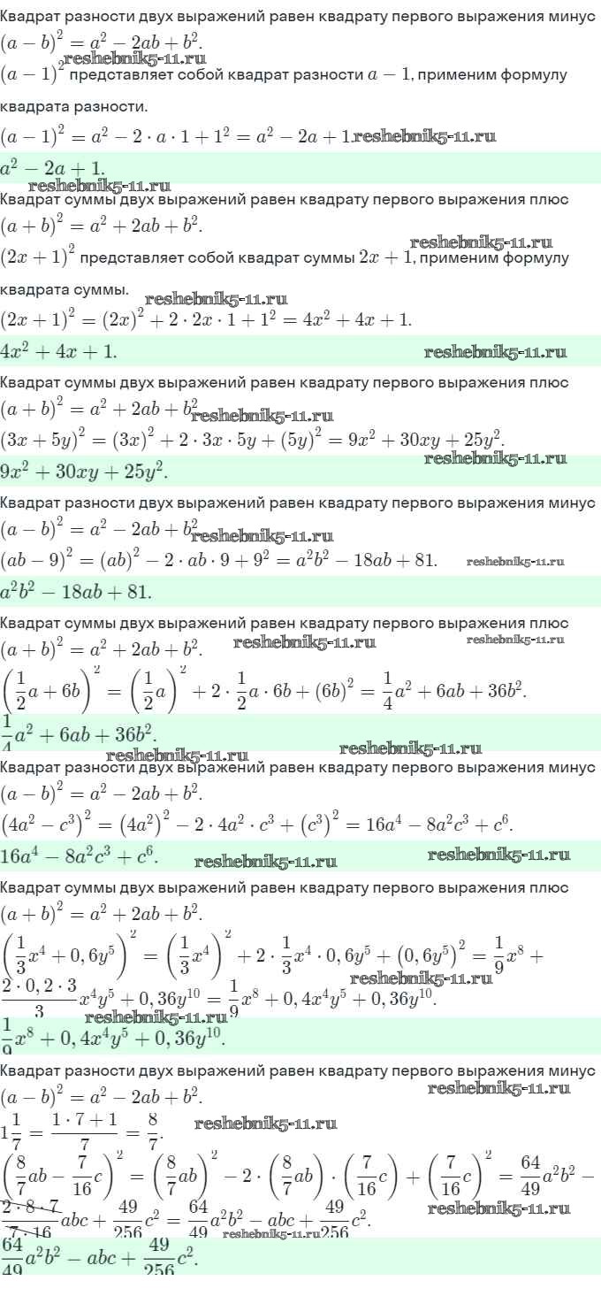 § 16. Квадрат суммы и квадрат разности двух выражений. Страница 82-91