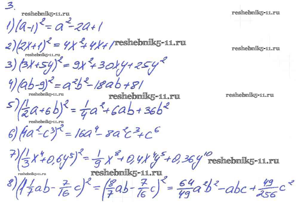 Готовая домашняя работа с ответами по Алгебре за 7 класс Мерзляк, Полонский, Якир Рабочая тетрадь Алгоритм успеха Часть 1, 2 Вентана-граф 2018 ФГОС - § 16. Квадрат суммы и квадрат разности двух выражений. Страница 82-91 3