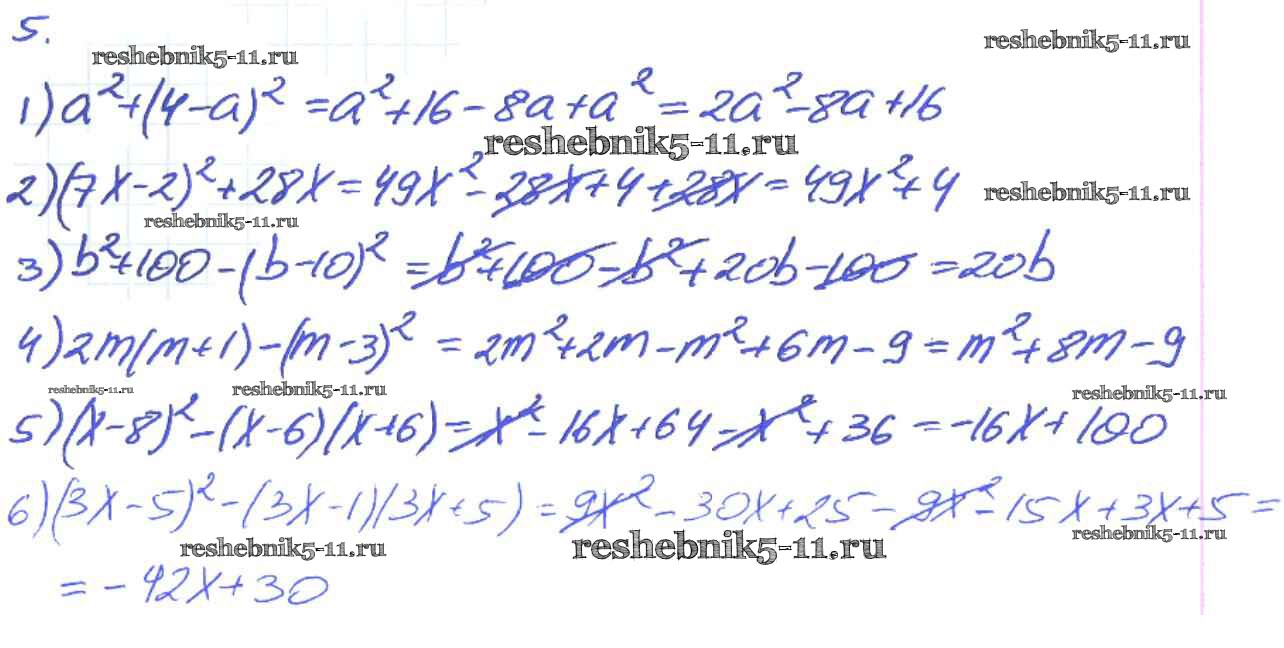 Готовая домашняя работа с ответами по Алгебре за 7 класс Мерзляк, Полонский, Якир Рабочая тетрадь Алгоритм успеха Часть 1, 2 Вентана-граф 2018 ФГОС - § 16. Квадрат суммы и квадрат разности двух выражений. Страница 82-91 5