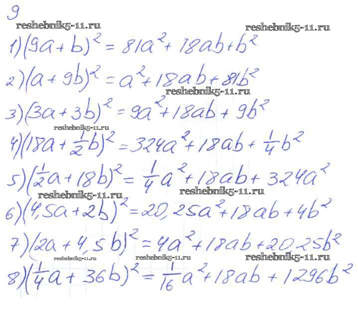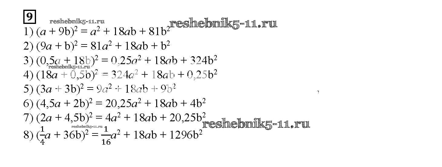 Готовая домашняя работа с ответами по Алгебре за 7 класс Мерзляк, Полонский, Якир Рабочая тетрадь Алгоритм успеха Часть 1, 2 Вентана-граф 2018 ФГОС - § 16. Квадрат суммы и квадрат разности двух выражений. Страница 82-91 9