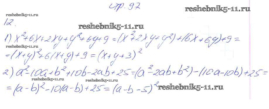 Готовая домашняя работа с ответами по Алгебре за 7 класс Мерзляк, Полонский, Якир Рабочая тетрадь Алгоритм успеха Часть 1, 2 Вентана-граф 2018 ФГОС - § 17. Преобразование многочлена в квадрат суммы или разности двух выражений. Страница 91-100 12