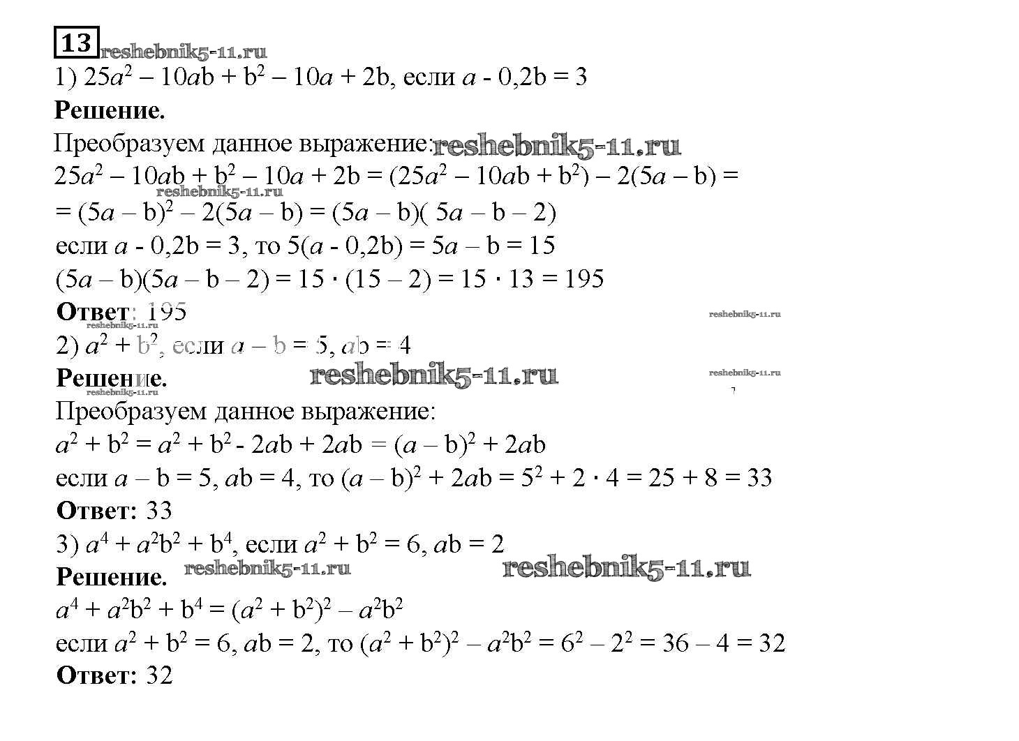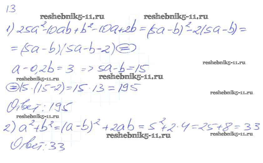 Готовая домашняя работа с ответами по Алгебре за 7 класс Мерзляк, Полонский, Якир Рабочая тетрадь Алгоритм успеха Часть 1, 2 Вентана-граф 2018 ФГОС - § 17. Преобразование многочлена в квадрат суммы или разности двух выражений. Страница 91-100 13