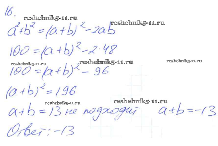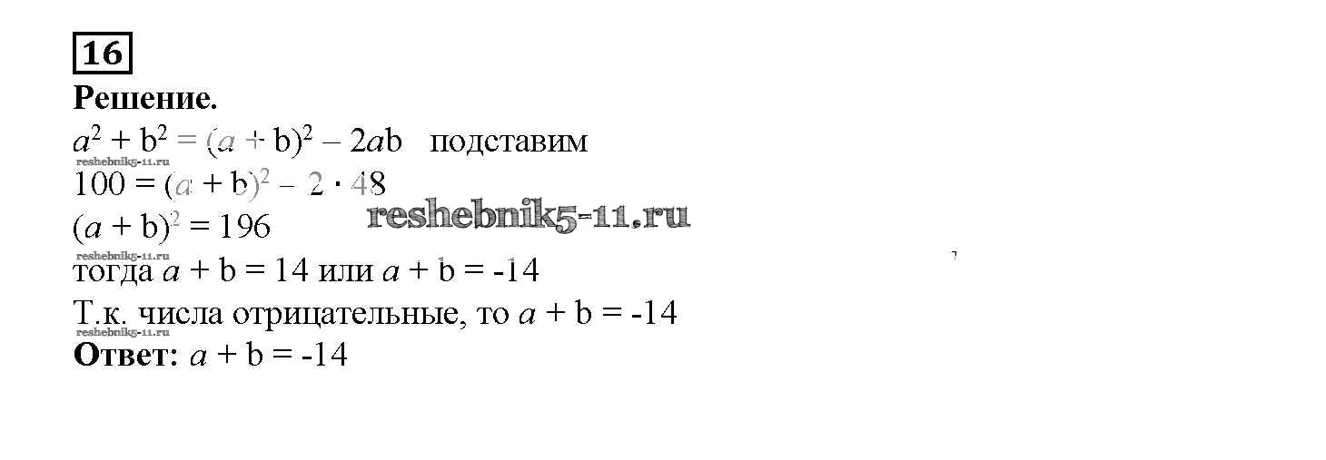 Готовая домашняя работа с ответами по Алгебре за 7 класс Мерзляк, Полонский, Якир Рабочая тетрадь Алгоритм успеха Часть 1, 2 Вентана-граф 2018 ФГОС - § 17. Преобразование многочлена в квадрат суммы или разности двух выражений. Страница 91-100 16
