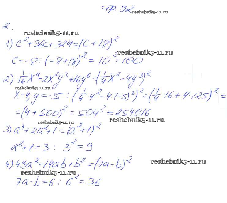 Готовая домашняя работа с ответами по Алгебре за 7 класс Мерзляк, Полонский, Якир Рабочая тетрадь Алгоритм успеха Часть 1, 2 Вентана-граф 2018 ФГОС - § 17. Преобразование многочлена в квадрат суммы или разности двух выражений. Страница 91-100 2