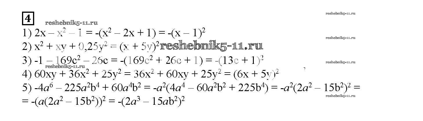 Готовая домашняя работа с ответами по Алгебре за 7 класс Мерзляк, Полонский, Якир Рабочая тетрадь Алгоритм успеха Часть 1, 2 Вентана-граф 2018 ФГОС - § 17. Преобразование многочлена в квадрат суммы или разности двух выражений. Страница 91-100 4