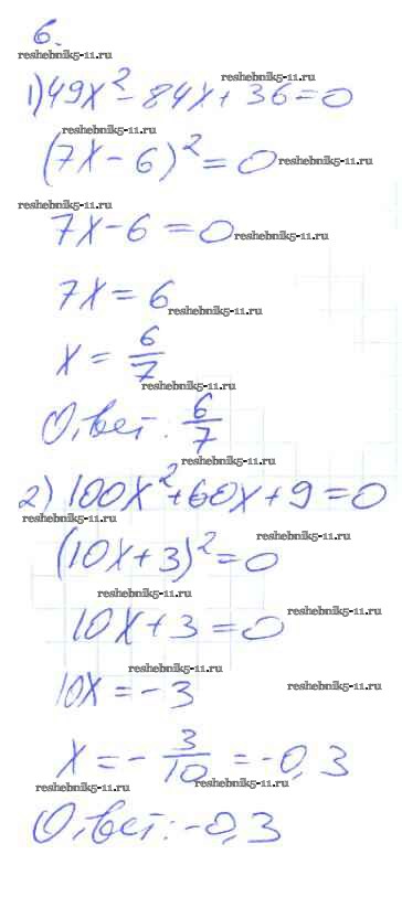 Готовая домашняя работа с ответами по Алгебре за 7 класс Мерзляк, Полонский, Якир Рабочая тетрадь Алгоритм успеха Часть 1, 2 Вентана-граф 2018 ФГОС - § 17. Преобразование многочлена в квадрат суммы или разности двух выражений. Страница 91-100 6