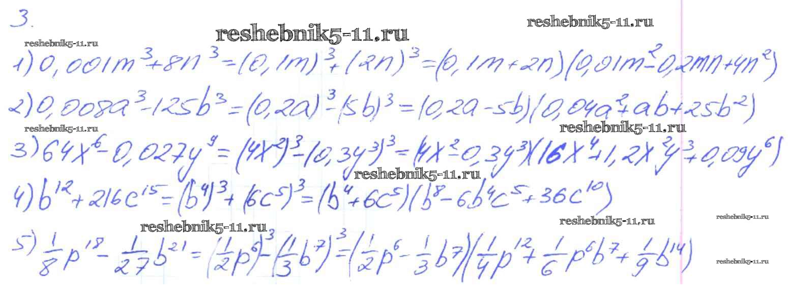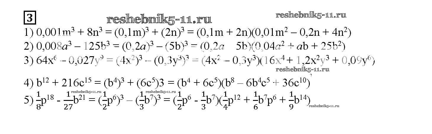 Готовая домашняя работа с ответами по Алгебре за 7 класс Мерзляк, Полонский, Якир Рабочая тетрадь Алгоритм успеха Часть 1, 2 Вентана-граф 2018 ФГОС - § 18. Сумма и разность кубов двух выражений. Страница 100-103 3