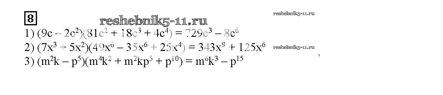 Готовая домашняя работа с ответами по Алгебре за 7 класс Мерзляк, Полонский, Якир Рабочая тетрадь Алгоритм успеха Часть 1, 2 Вентана-граф 2018 ФГОС - § 18. Сумма и разность кубов двух выражений. Страница 100-103 8