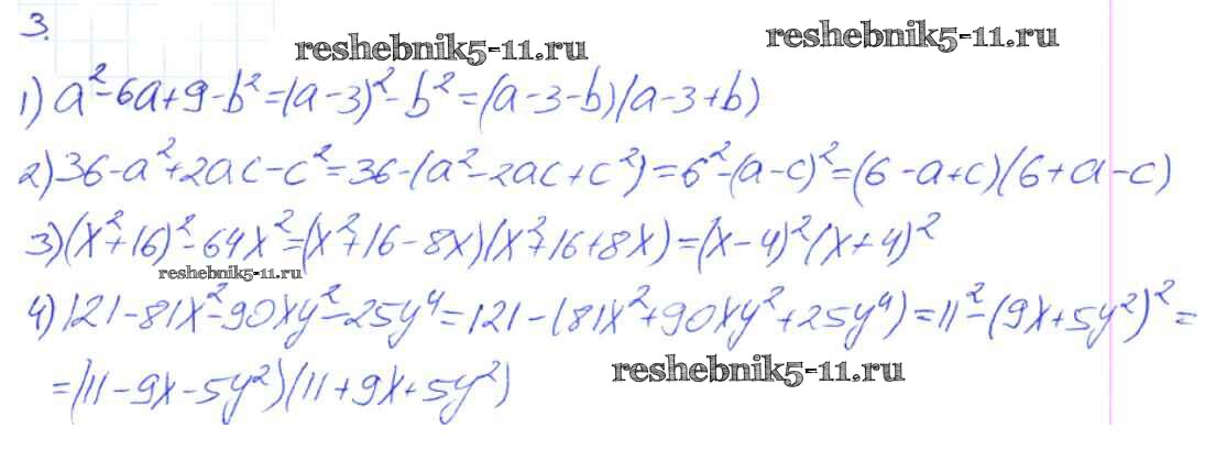 Готовая домашняя работа с ответами по Алгебре за 7 класс Мерзляк, Полонский, Якир Рабочая тетрадь Алгоритм успеха Часть 1, 2 Вентана-граф 2018 ФГОС - § 19. Применение различных способов разложения многочлена на множители. Страница 104-110 3