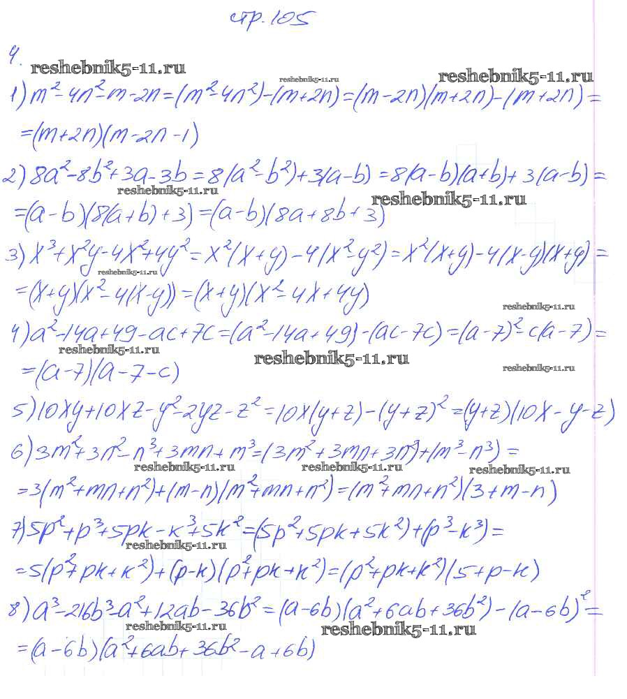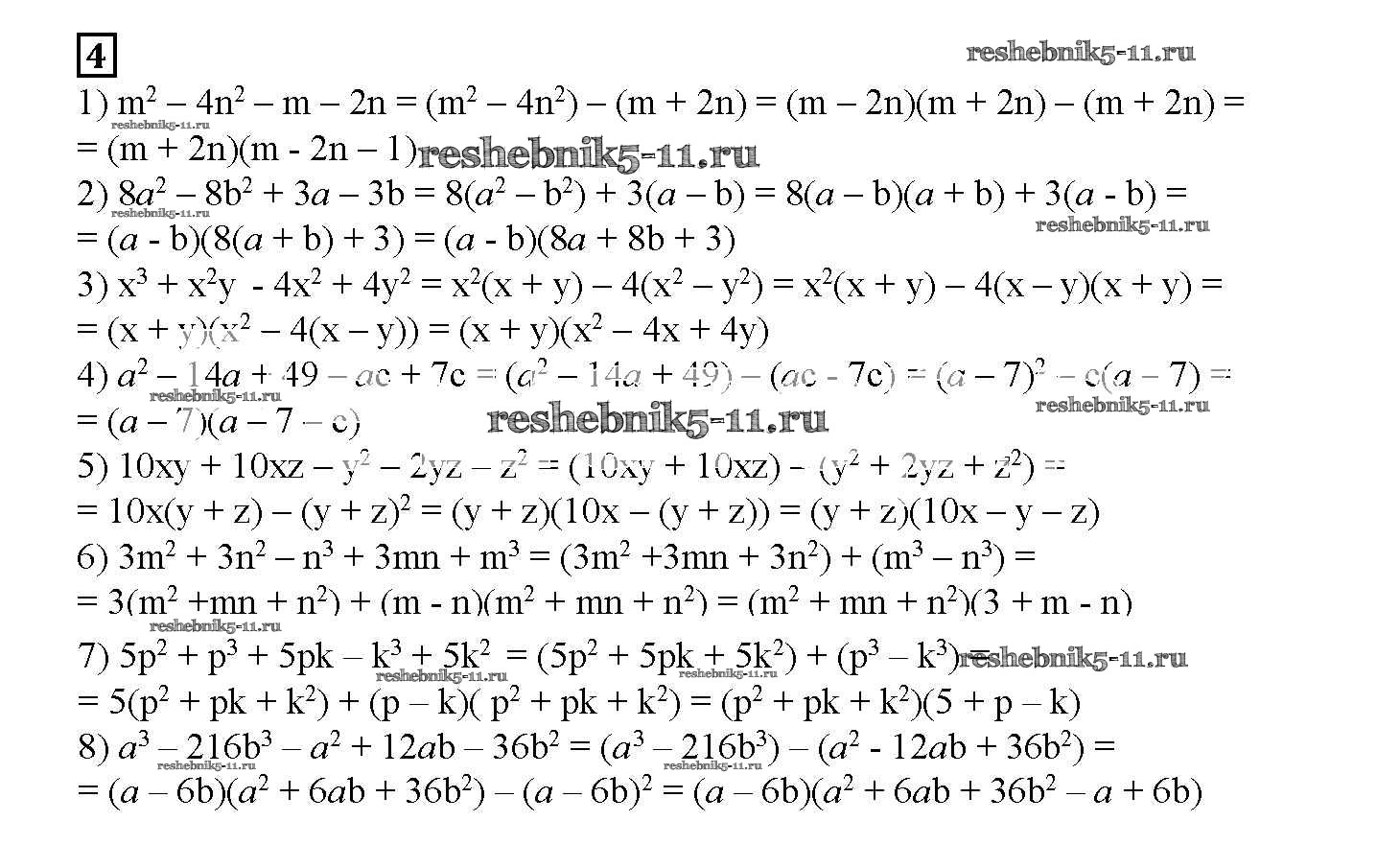 Готовая домашняя работа с ответами по Алгебре за 7 класс Мерзляк, Полонский, Якир Рабочая тетрадь Алгоритм успеха Часть 1, 2 Вентана-граф 2018 ФГОС - § 19. Применение различных способов разложения многочлена на множители. Страница 104-110 4
