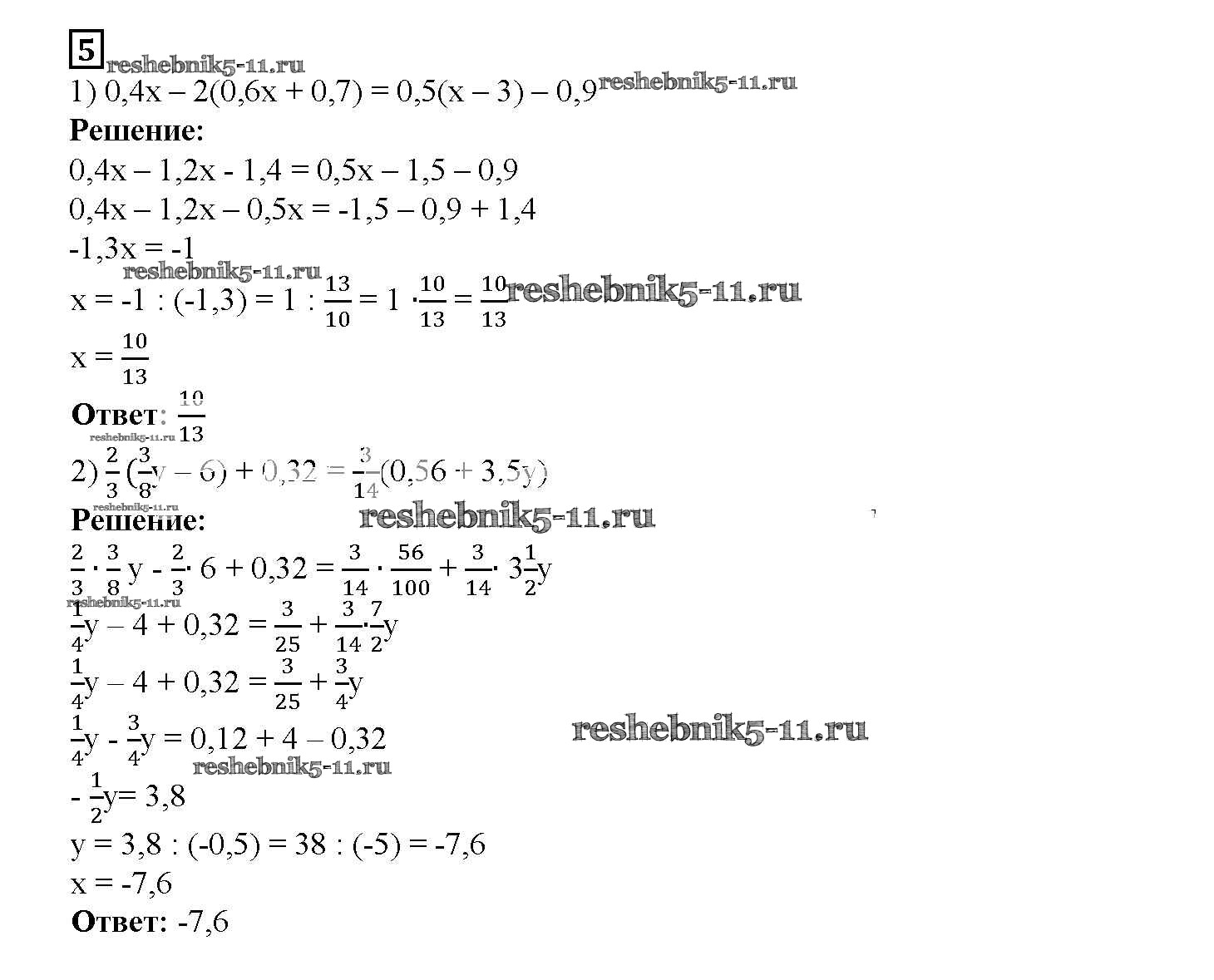 Готовая домашняя работа с ответами по Алгебре за 7 класс Мерзляк, Полонский, Якир Рабочая тетрадь Алгоритм успеха Часть 1, 2 Вентана-граф 2018 ФГОС - § 2. Линейное уравнение с одной переменной. Страница 8-15 5