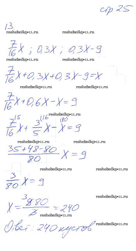 Готовая домашняя работа с ответами по Алгебре за 7 класс Мерзляк, Полонский, Якир Рабочая тетрадь Алгоритм успеха Часть 1, 2 Вентана-граф 2018 ФГОС - § 3. Решение задач с помощью уравнений. Страница 15-27 13