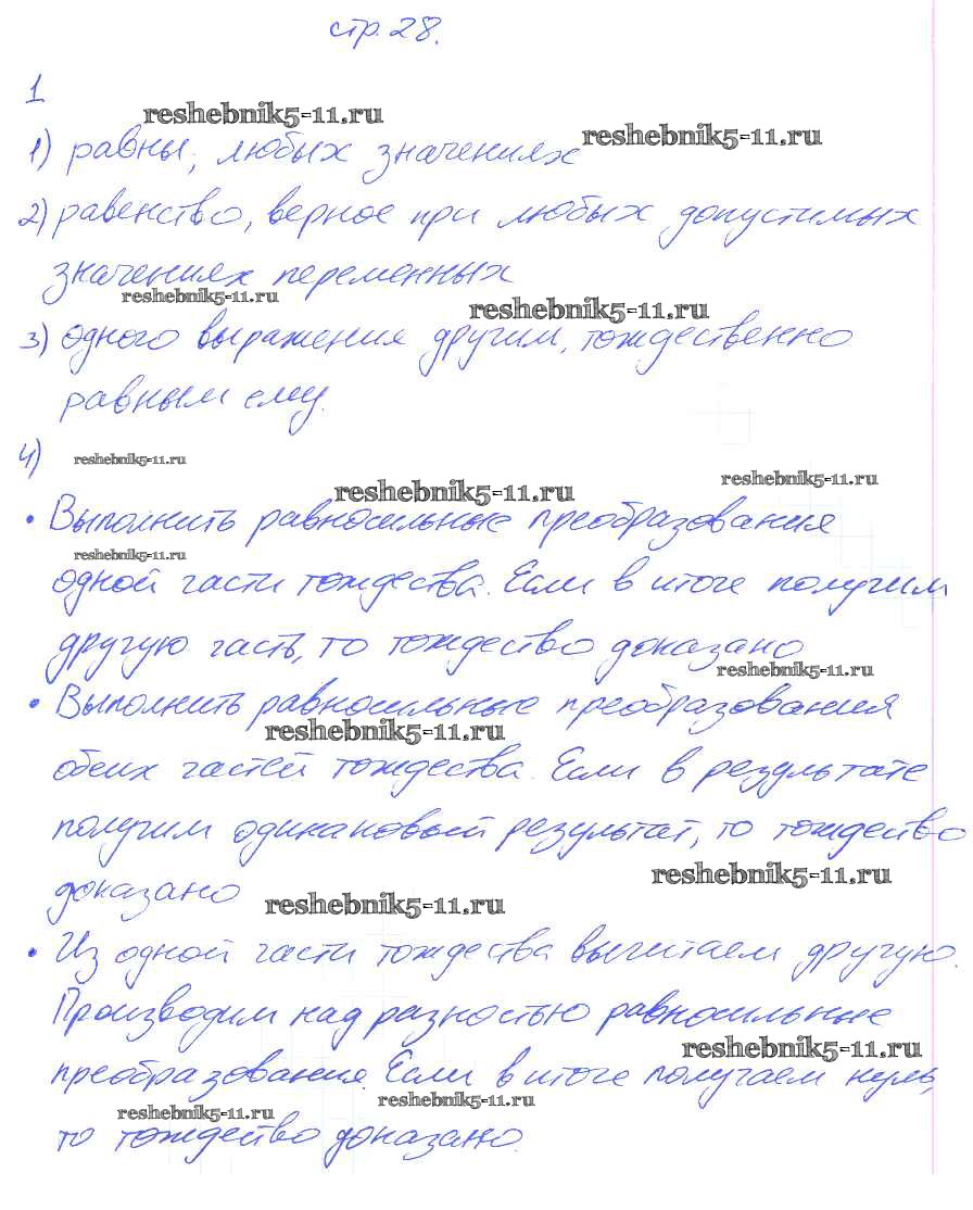 § 4. Тождественно равные выражения. Тождества. Страница 28-30