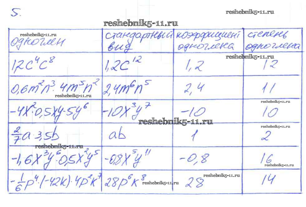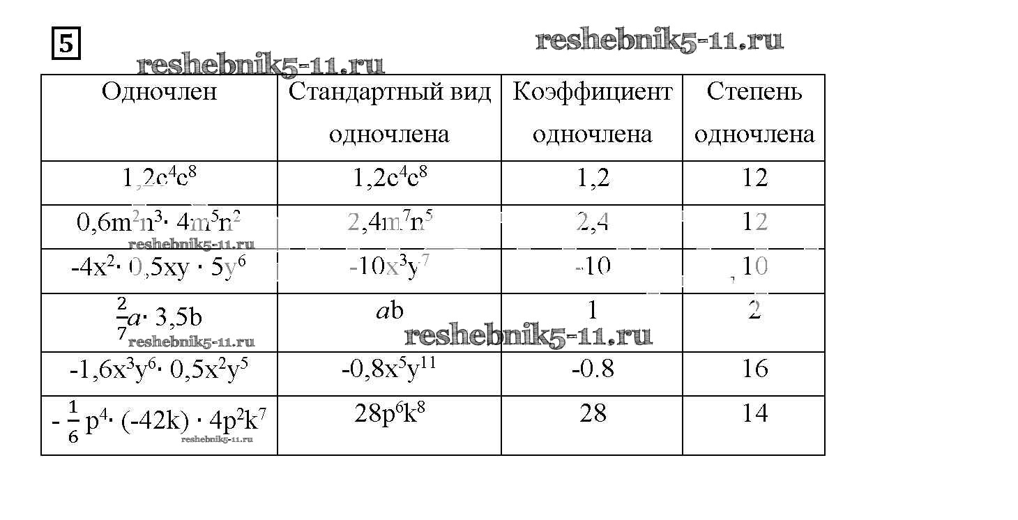 Готовая домашняя работа с ответами по Алгебре за 7 класс Мерзляк, Полонский, Якир Рабочая тетрадь Алгоритм успеха Часть 1, 2 Вентана-граф 2018 ФГОС - § 7. Одночлены. Страница 37-40 5