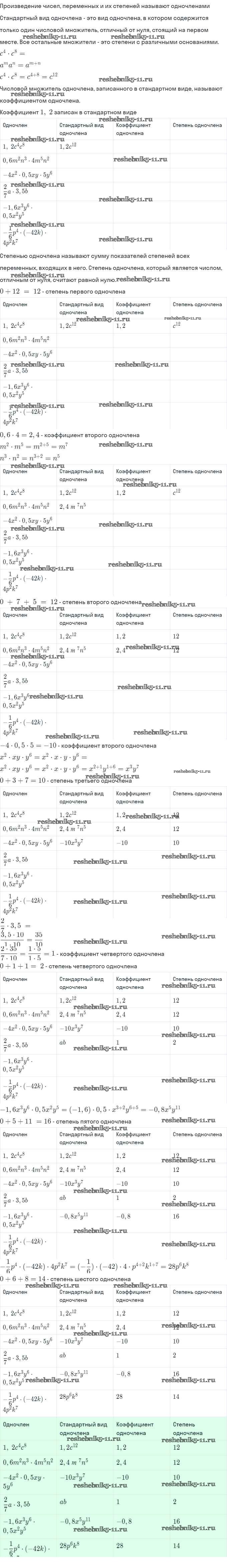 § 10. Умножение одночлена на многочлен. Страница 48-55