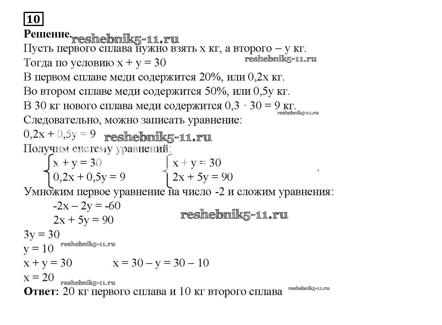 Готовая домашняя работа с ответами по Алгебре за 7 класс Мерзляк, Полонский, Якир Рабочая тетрадь Алгоритм успеха Часть 1, 2 Вентана-граф 2018 ФГОС - § 29. Решение задач с помощью систем линейных уравнений. Страница 67-78 10
