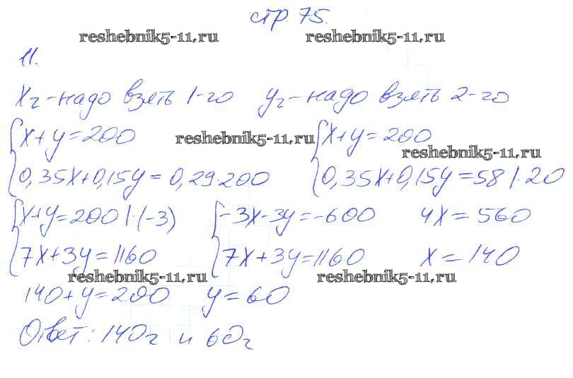 Готовая домашняя работа с ответами по Алгебре за 7 класс Мерзляк, Полонский, Якир Рабочая тетрадь Алгоритм успеха Часть 1, 2 Вентана-граф 2018 ФГОС - § 29. Решение задач с помощью систем линейных уравнений. Страница 67-78 11