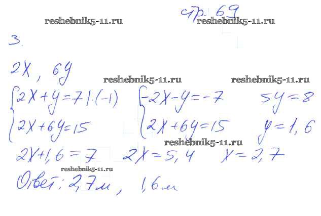Готовая домашняя работа с ответами по Алгебре за 7 класс Мерзляк, Полонский, Якир Рабочая тетрадь Алгоритм успеха Часть 1, 2 Вентана-граф 2018 ФГОС - § 29. Решение задач с помощью систем линейных уравнений. Страница 67-78 3