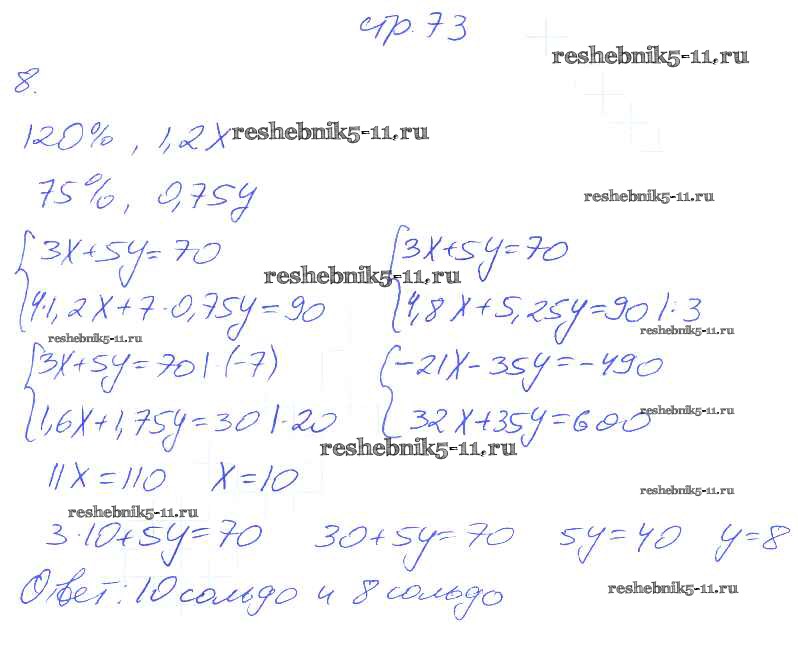 Готовая домашняя работа с ответами по Алгебре за 7 класс Мерзляк, Полонский, Якир Рабочая тетрадь Алгоритм успеха Часть 1, 2 Вентана-граф 2018 ФГОС - § 29. Решение задач с помощью систем линейных уравнений. Страница 67-78 8